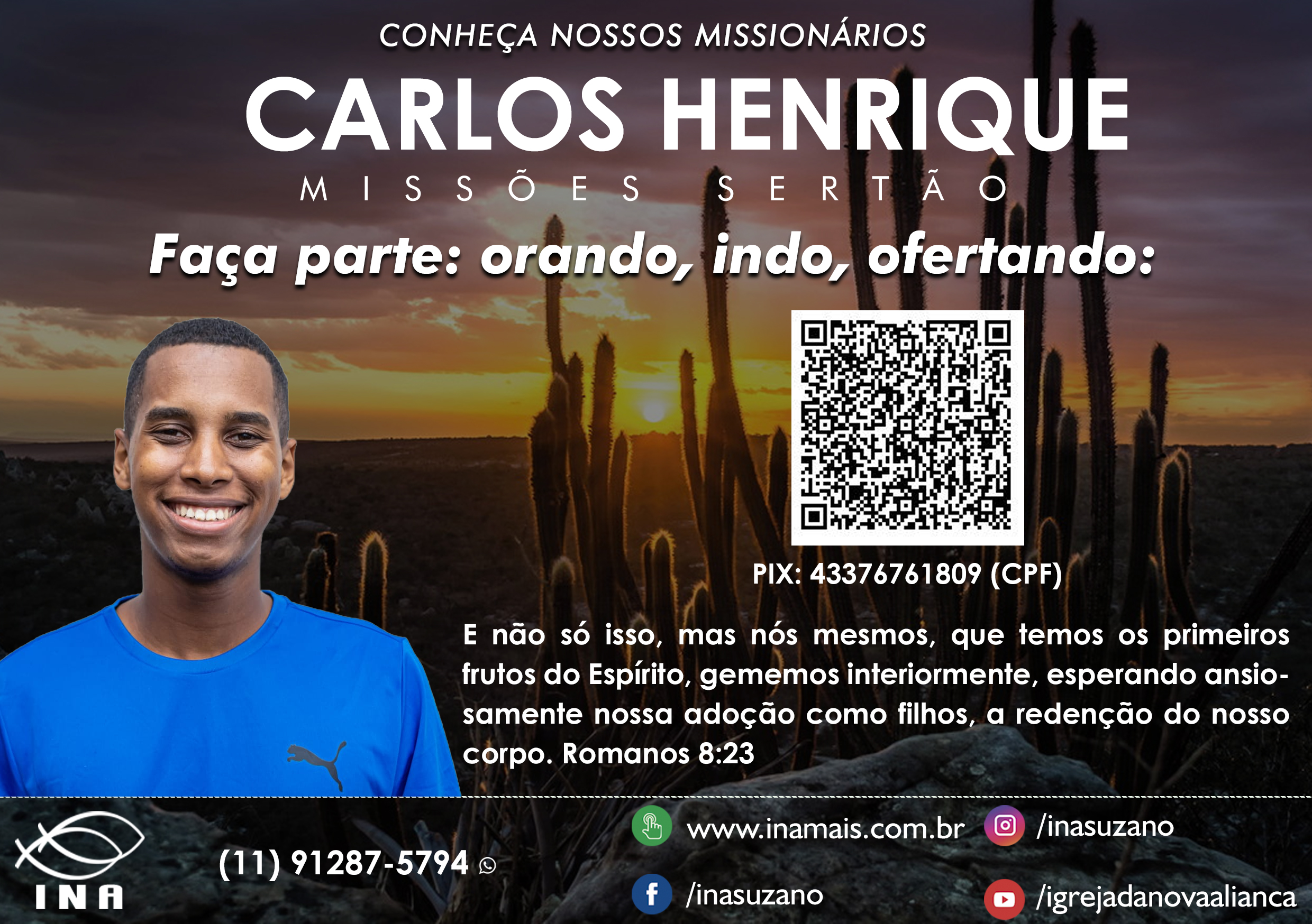 Esta é uma obra cristã, com foco na intercessão e evangelização em favor dos povoados e cidades do Sertão Nordestino não alcançadas pelo Evangelho de Jesus Cristo.